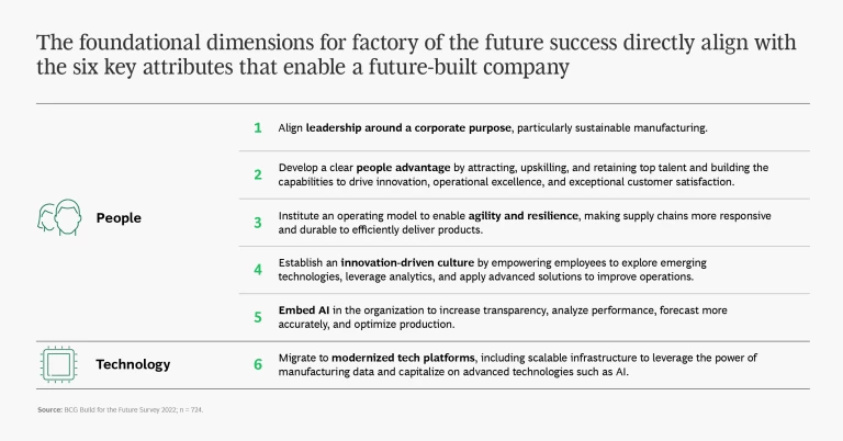 BCG has assembled a large and growing body of research about how manufacturers can dramatically improve performance across all these dimensions. We call it the factory of the future (FoF). Manufacturers worldwide have already started applying these ideas, and they are already seeing results. (See “Build for the Future.”)