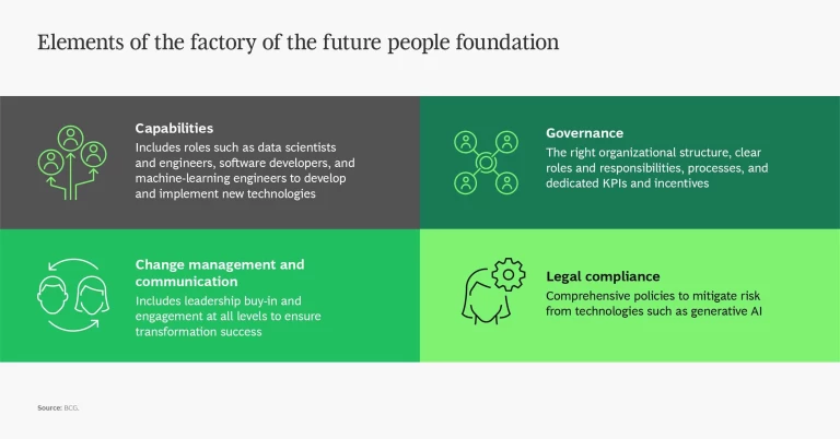 - People. Recruiting the right talent, upskilling the workforce through capability-building programs, creating the right governance (including organization structure, roles and responsibilities, processes, and incentives and KPIs), and developing a strong change management and communication strategy.