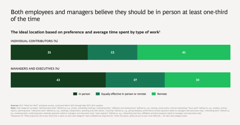 The most effective work models reflect these preferences and behaviors, which can be unique to individual organizations, functions, and teams.