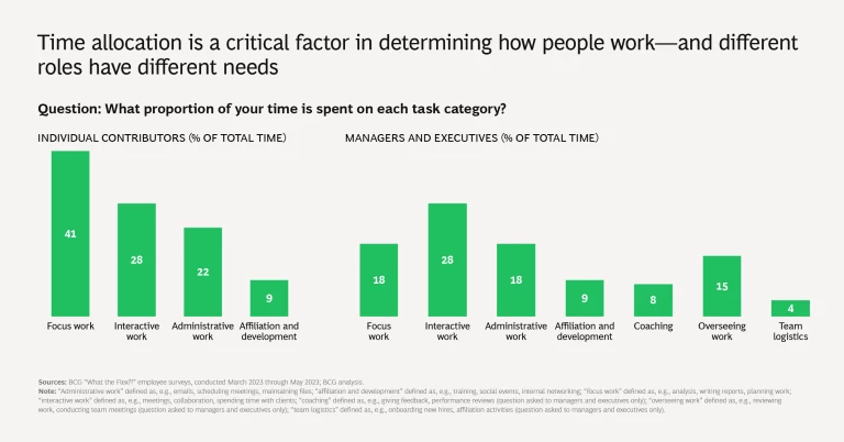 The question “What is the right work model policy?” looms large for leaders today. But that is not the right question to be asking. The right one is “How do we construct work to optimize both productivity and joy?” And the answer to that question can be found only through a deep understanding of how people do their best work—across all categories of responsibilities and tasks. This is the key finding from our surveys of more than 1,500 global office-based workers’ behaviors and preferences, which complement our research on how to make work work better for deskless workers.
