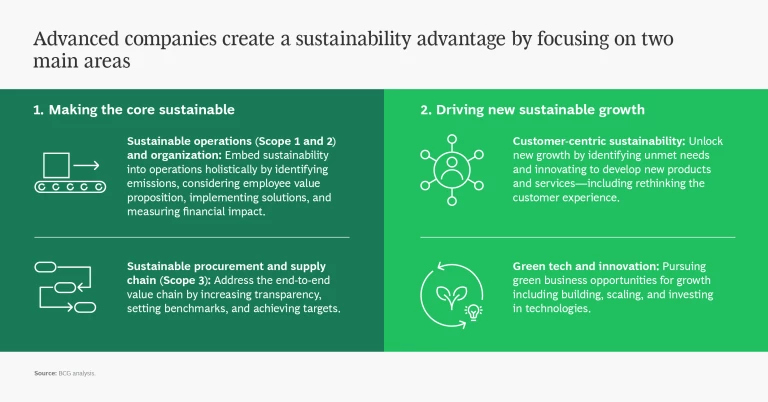 Leading companies create a competitive advantage from sustainability in two major ways:
