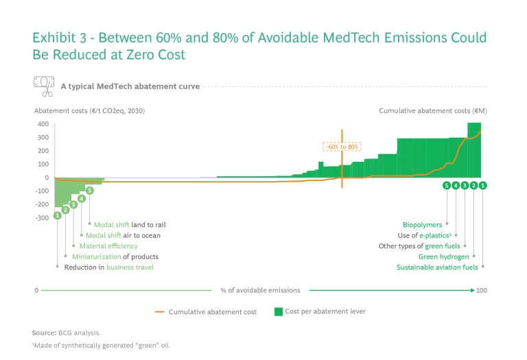 Spurred by the potential impact of climate change on global health and environmental concerns raised by providers, patients, regulators, and investors, MedTech CEOs are increasingly becoming aware that they must take immediate action on decarbonization. Some of the early environmental, social, and governance (ESG) front-runners are already benefitting in unexpected ways. For example, if planned right, abating 20% to 30% of emissions could generate a net cost saving—and cutting emissions by up to 80% could be cost neutral. What’s more, reducing emissions can enable MedTech companies to tap into new revenue streams, such as climate-friendly (energy-efficient and lower-waste) product lines, and lead to improved ESG scores. This can strengthen a company’s reputation and improve talent attraction and retention in the near term.