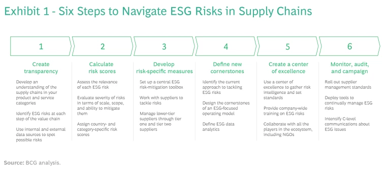 Create Transparency. The starting point must be for the organization to develop an in-depth understanding of all its supply chains, which can extend across the globe and have many layers, as well as the various steps in the sourcing and manufacturing processes. After tracing each supply chain from end to end, the company should assess trade flows as well as the countries and suppliers involved. It will then be able to identify the potential ESG risks that form the basis on which it can calculate risk scores.