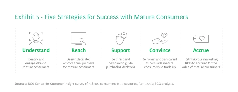 On the basis of our extensive research, we recommend five key strategies for successfully engaging with mature consumers. (See Exhibit 5.)