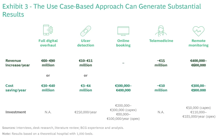 - Digitization of the operating model flattens rising costs. Internal processes become more efficient and scalable, freeing clinicians to focus on value-added activities. The head of digital transformation at a French hospital put it this way: “Digital initiatives come from a push by the hospital staff; our priority is to give back time to caregivers.”