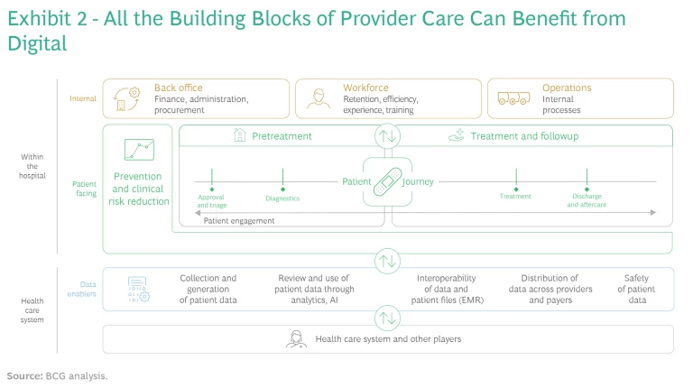 Hospitals need a modern and efficient IT system that enables operations to run fast enough and that can sustain subsequent cycles of digitization. As the CEO of a French hospital told BCG, “Most digital initiatives require building on or replacing existing legacy systems, making the integration complex and costly.”