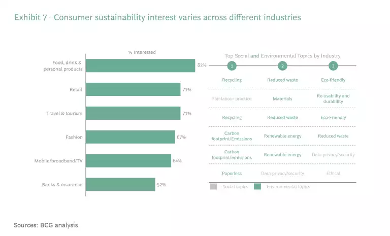 - Green consumer products: Developing premium retail products with lower environmental impact, transparent supply chains enabled by digitisation, and clear sustainability metrics to attract a growing segment of customers that value sustainability.