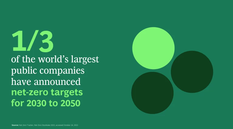 When that happens, members of the workforce will continue to bring their crucial business and functional expertise (marketing, accounting, and customer service, for instance) to bear, but with the addition of critical sustainability skills and a sustainability mindset. In this new talent scenario—where the sustainability team is not a few dozen individuals but rather the wider organization—companies can turn sustainability goals into lasting competitive advantage and net-zero pledges into reality. This is a critical and increasingly common need, fueled by the large number of companies that are committing to reduce their emissions and their overall footprint.