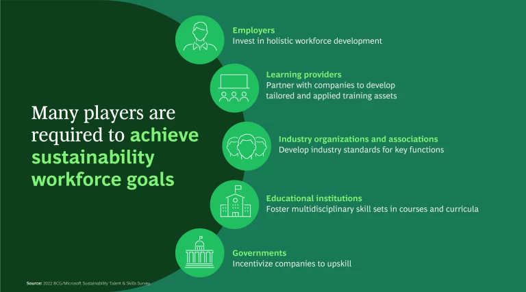 The upskilling challenge is daunting. Companies are doing what they can with the solutions that exist. But to meet the rapidly growing, increasingly urgent worldwide demand for sustainability talent a variety of players must take action.