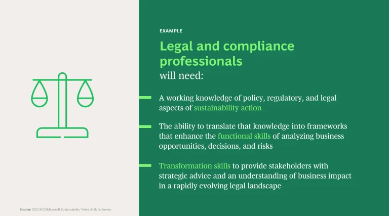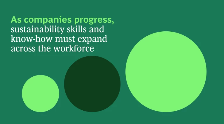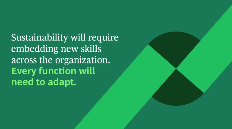 Every function and every job within companies will need to adapt in ways that support the sustainability transformation. Product designers will need to learn to design for circularity, for instance, and logistics staff will have to know how to optimize routes, transport modes, and vendors to minimize the organization’s carbon footprint.