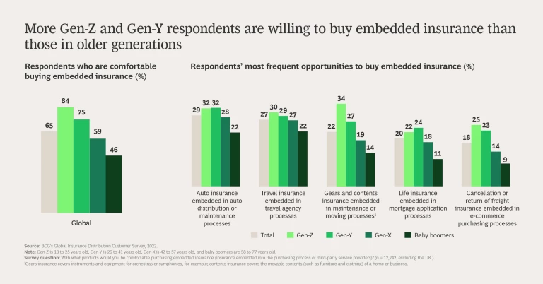Younger generations are less price sensitive and are typically happy to pay more for innovative products (such as digital-asset insurance and embedded insurance), as well as for product flexibility and greater convenience. Insurers should therefore consider these options in product development and in their marketing and sales efforts.