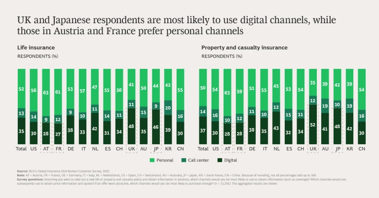 The preference for digital channels varies among countries, of course. The UK and Japanese markets lead the way, while Austrian and French respondents currently still tend to prefer personal interactions.
