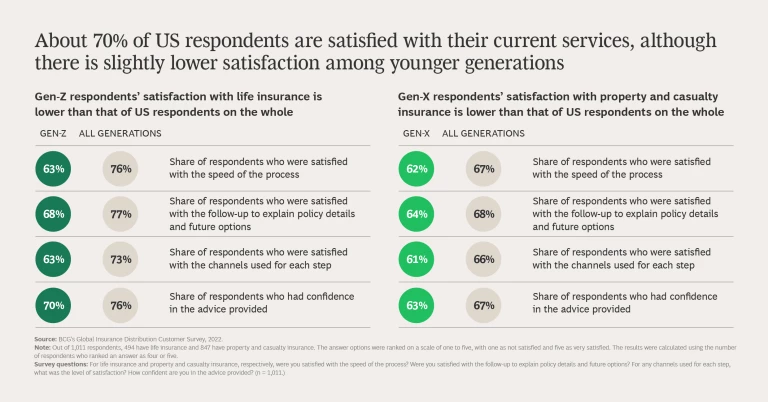 In China, respondents show a strong desire for health and life insurance. And in the US, we find it interesting that about 70% of the insurance customers surveyed are satisfied with their current services, especially among older generations. (See the slideshow “Market Trends.”)