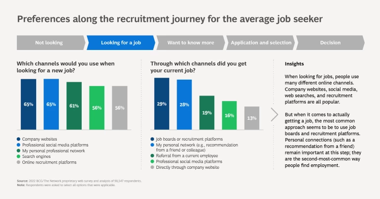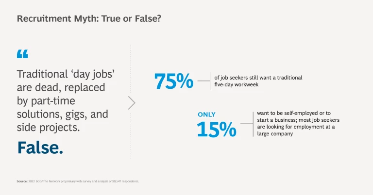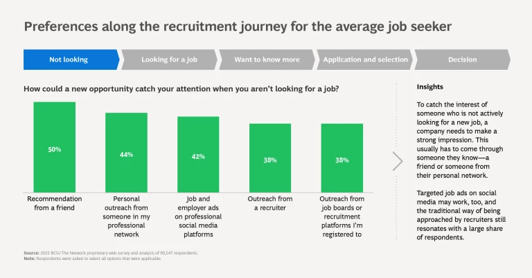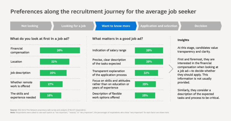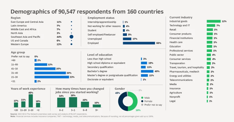 Who better to clarify those uncertainties and help companies improve their recruiting ROI than job candidates themselves? From August through October 2022, BCG and The Network, a global alliance of recruitment websites, undertook the world’s largest survey dedicated to exploring job seekers’ recruitment preferences—more than 90,000 people participated. (See “Methodology.”)