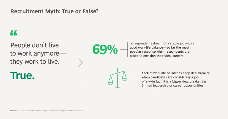 But work-life balance (in accordance with people’s long-term vision) ranks second behind financial compensation. And, in most regions of the world, people consider shortcomings related to paid time off and job security to be leading deal breakers.