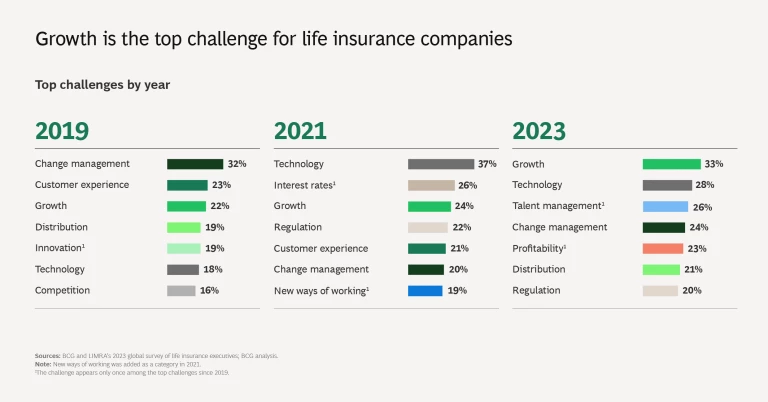 It was in the context of an increasingly complex and vigorous market that BCG and LIMRA conducted the third edition of the biennial survey of life insurance executives. The slideshow presents the results of the 2023 survey, providing insights into the highest priorities and concerns of life insurance leaders.