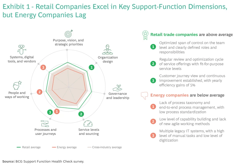 Support functions, often considered the backbone of corporate efficiency, can play a vital role in shaping a company’s culture, operations, and adaptability. Even so, a BCG study found that only about one in five companies have high-performing support functions, with a substantial gap between the best and worst performers.