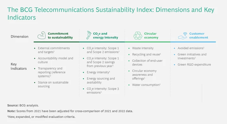 Since BCG began sharing the Telco Sustainability Index, we have seen significant improvements across all dimensions. Despite slower progress this year, the industry’s gains are a credit to the industry and show its continued commitment to sustainability.