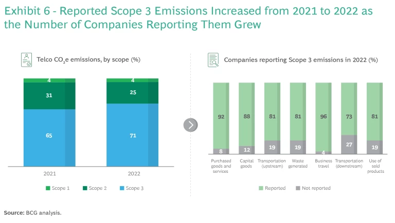 To that end, telecom operators must accelerate their efforts in both reporting and achieving results. This will be no easy task. They must improve the accuracy and completeness of their reporting to gain a better understanding of their sustainability progress. They must continue to make gains in managing their own emissions while reducing their energy consumption and shifting to renewable energy. And they must capture a clearer picture of the carbon footprint of their upstream and downstream Scope 3 emissions.