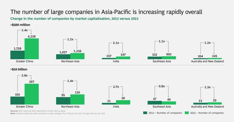 Market capitalization is growing fast for public companies of all sizes in Asia-Pacific.