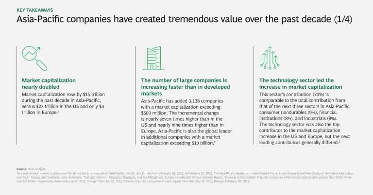 The acceleration of scale, pursuit of growth, and leadership of the technology sector have provided the foundation for Asia-Pacific’s value-creation journey.