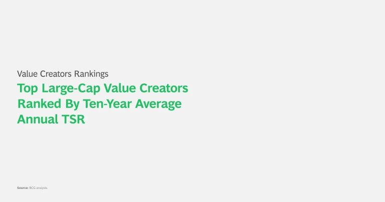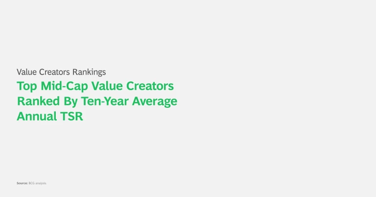 Disclaimer: The materials contained in this article and slideshow are designed for information purposes only. BCG does not provide fairness opinions or valuations of market transactions, and these materials should not be relied on or construed as such. A company’s inclusion in the ranking does not represent an endorsement by BCG. This article and slideshow do not provide investment or financial advice. Users should contact their advisor to receive such advice.