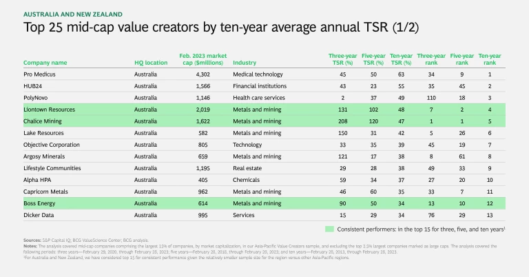 Top performers have emerged across subregions and industries, showing that any company can excel in delivering shareholder returns.