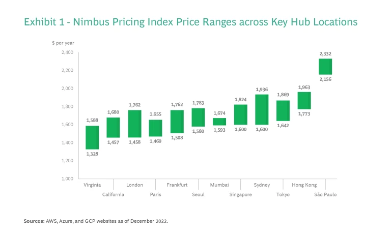 In this inaugural snapshot, we will share our findings in these key areas of activity and also introduce the Nimbus Pricing Index (NPI), a rigorously standardized index designed to help executives answer some essential and vexing questions, including: What is the average list price per head for a basic cloud package? How do costs vary by region? What is the highest-priced location to operate in? What is the lowest priced? The NPI will finally allow companies to make real price comparisons over time and across geographies.