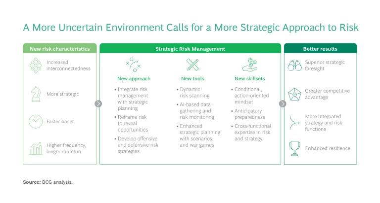 It’s about institutionalizing what we call an Uncertainty Advantage—and creating a strategy-led, risk-intelligent organization that doesn’t just survive disruption, but actually thrives on it. The exhibit offers a summary of the key elements of a strategic risk management approach.