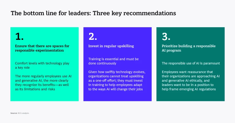 - But there are vast differences in perceptions of AI between leaders at the top and employees on the frontline—and companies need to address those differences.