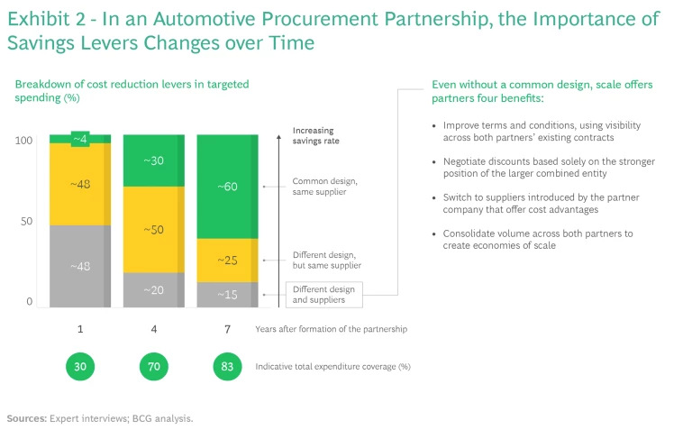 Despite the challenges, the payoff can be significant. Successful procurement partnerships can deliver cost savings of 3% to 10% or more of in-scope spending, due to increased purchasing power, economies of scale, shared best practices, supply chain synergies, and the ability to standardize components.