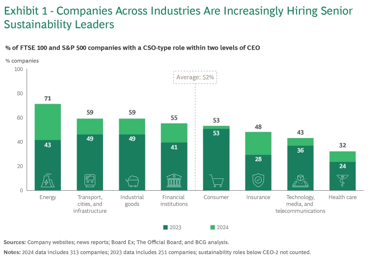 In part, the rise of the CSO role stems from growing numbers of organizations setting ambitious and high-profile sustainability targets—and frequently struggling to meet them. According to the Science Based Targets Initiative, more than 4,200 companies had an approved greenhouse gas emissions reduction target by the end of 2023, a 102% increase since 2022.