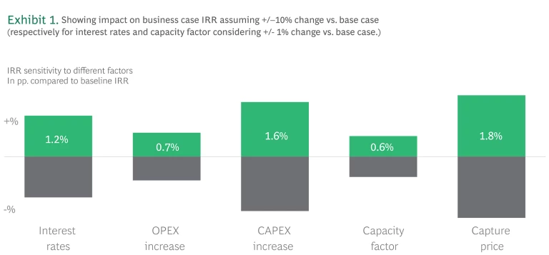 A review of recent offshore wind business cases shows that the importance of a focus on revenue during the lifetime of the asset creates most value of the business case expressed by the internal rate of return (IRR). (See Exhibit 1.)