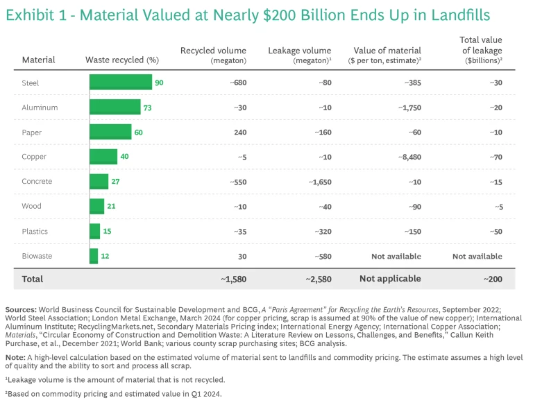 Even if we can recover only half the value, those estimates highlight the business potential of circularity. Circularity is not just good for the environment. If companies can intercept waste before it hits landfills, it’s good for business too. (See Exhibit 1.)