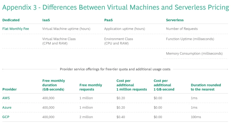 If we compare the pricing for all three vendors, Azure currently is the cheapest option across regions, followed by AWS and then GCP. In most regions, AWS is 4% to 9% more expensive, while GCP is 20% to 60% more expensive. Despite GCP’s premium pricing—second generation serverless compute costs are almost double in some regions—it offers the most generous allotment of free monthly requests. Eventually, this feature could make GCP a more economically viable alternative for applications with lighter volume requests.