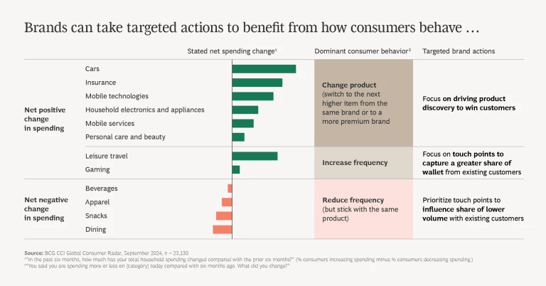 - For categories where consumers say they spend more or are likely to spend more by buying more frequently, such as leisure travel and gaming, brands can focus touch points to win a greater share of wallet as customers satisfy their increased demand and embrace new occasions for spending.