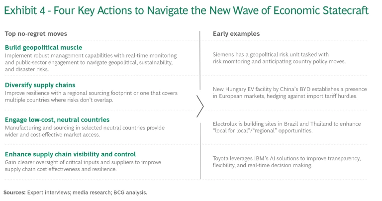 The rise of economic statecraft has profound implications for global businesses. Here are four key actions c-suite executives should consider. (See Exhibit 4.)