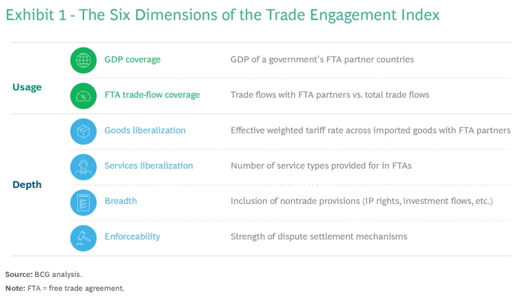 - As new trade agreements are announced, companies can use the BCG TEI to establish a baseline to determine where they can seek to shape the policies in future trade agreements to benefit their global value chains.