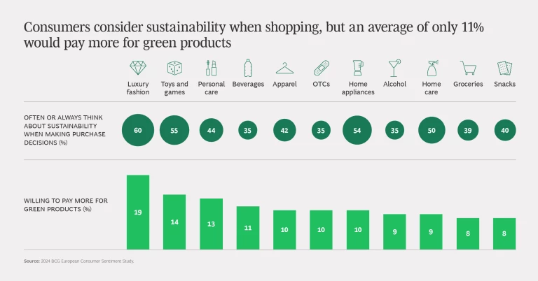 However, an average of only 11% of French consumers said they would be willing to pay more for green products. The portion of the population who would pay a green premium is lower than the 19% average for all the countries we surveyed. The difference illustrates divide that exists between what people say they are concerned about and their willingness to act on those concerns, or what we often refer to as the sustainability say-do gap.