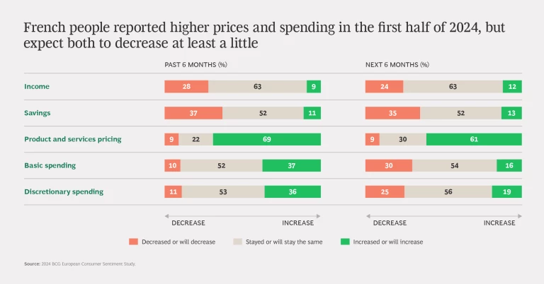 French people are worried about politics and the state of the economy. According to new BCG consumer research, they also feel squeezed by the high inflation, which has impacted spending attitudes and behaviors.
