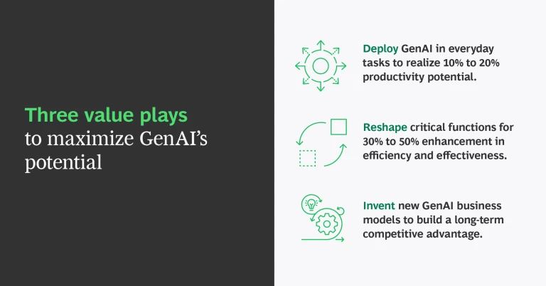 But this is not a time to wait and see. Winners recognize that GenAI is here to stay and that extraordinary opportunities for productivity gains—as well as topline growth—are within reach right now.