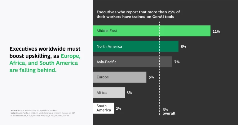 - Only 6% of companies have managed to train more than 25% of their people on GenAI tools so far.