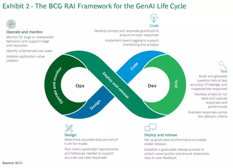 Our RAI framework spans the entire GenAI life cycle, from design to operation and monitoring. (See Exhibit 2.)