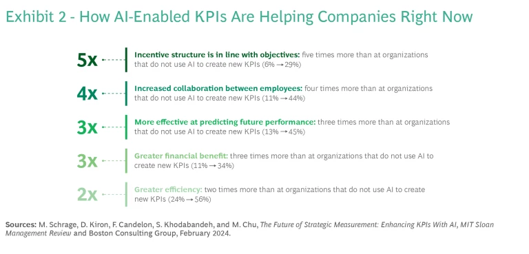 Organizations using AI-enabled KPIs are five times more likely to effectively align incentive structures with objectives compared to those that rely on legacy KPIs. (See Exhibit 2.)