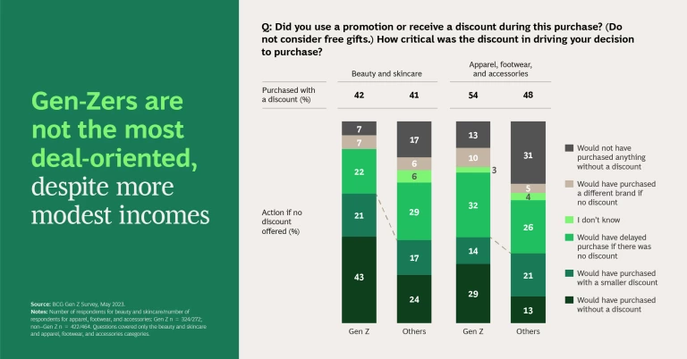 A number of Gen Z characteristics might be surprising. While brands might imagine that Gen-Zers are looking to save some of their relatively low income, we find that these consumers are not necessarily hunting the lowest price or the best promotion. Instead, their responses lean more toward the way they experience a brand. For example, earning the right to meet an influencer they follow might be more persuasive than a promotion.