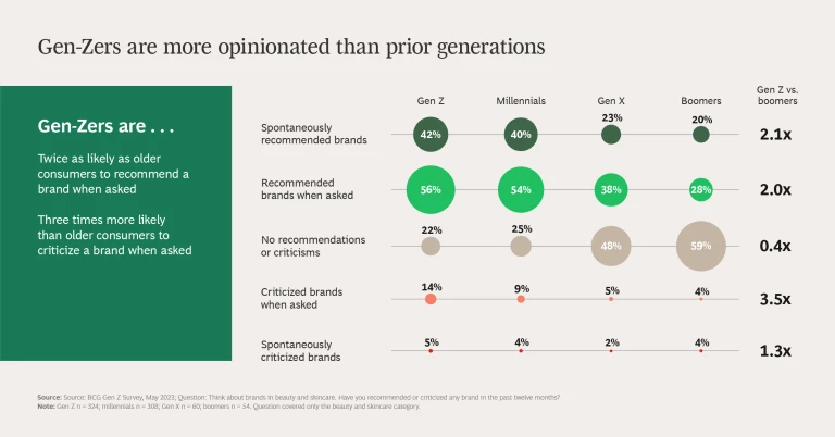 Gen-Zers are also seeking items that they truly want, that speak to their lives, or that support their overall enjoyment. And they don’t want to make tradeoffs. In skincare, for example, they are unwilling to compromise on quality to get a lower price. A number of other characteristics also stand out as well.