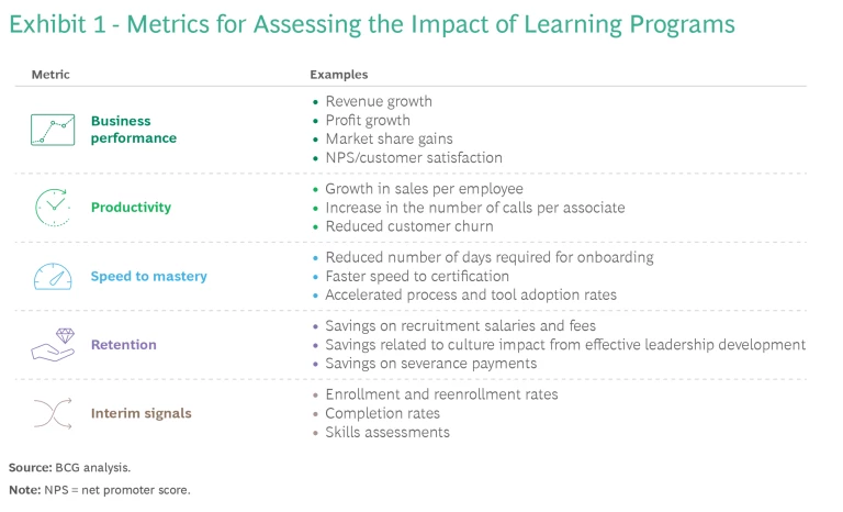 Assess whether the upskilling program has achieved the targeted impact. This can be challenging to do because not all programs need to be measured with the same level of rigor.