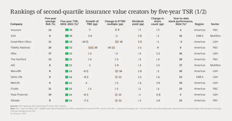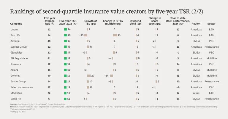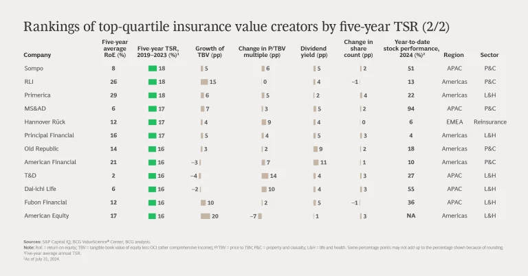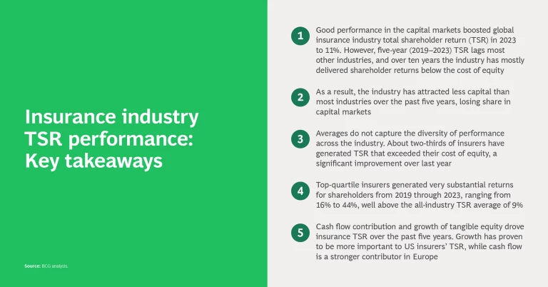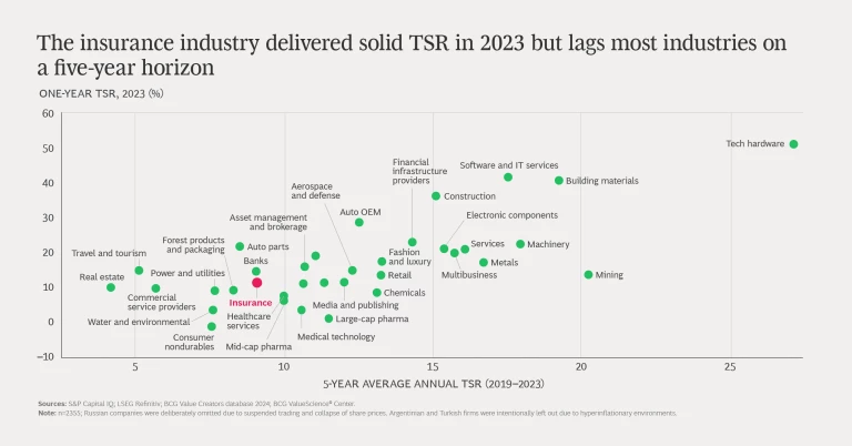 The following slide show provides a detailed look at the insurance industry’s 2019–2023 TSR story.