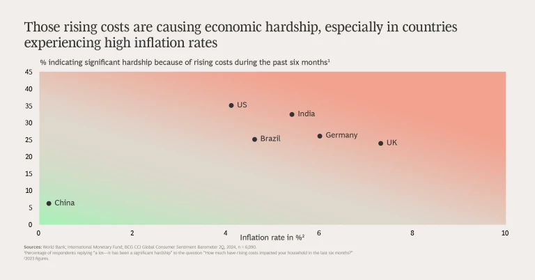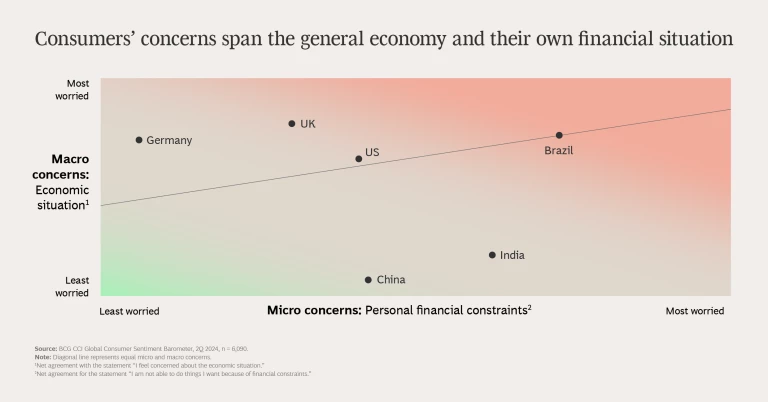 Inflation. The economy. Prices. Geopolitics. When we asked consumers what’s on their minds, these were among the most common replies. Consumers are worried. Their concerns span the general economic situation as well as their personal financial situation, according to a recent survey of more than 6,000 consumers in six countries, conducted by BCG’s Center for Customer Insight (CCI). (See “About Our Research.”)
