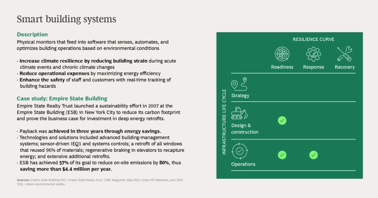 - The design and construction phases for new or upgraded assets translate an organization’s strategic vision into tangible infrastructure. Given the long-term nature of these assets, it's imperative that organizations integrate climate resilience into them from design onward.
